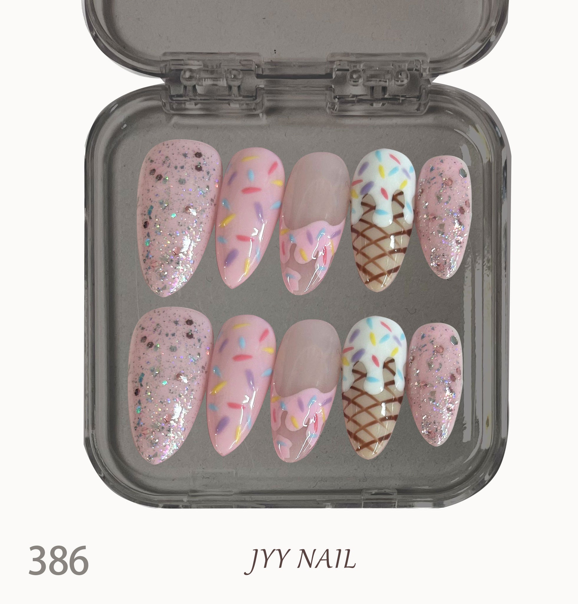 The finished pink donut manicure is very cute, suitable for any kind of casual or small dress, can instantly enhance the overall look. This manicure is not only suitable for everyday wear, but can also show off a unique personality for parties or special occasions 34