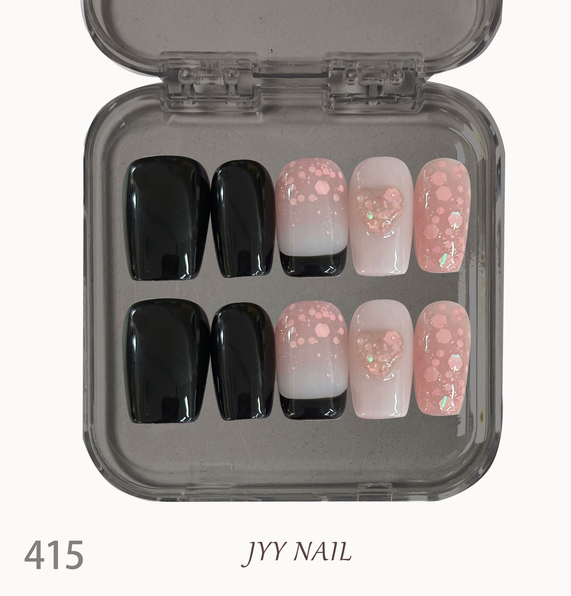 A415 Black powder love thin flash:Black pink Heart fine flash fringe Sweet cool Spice Girl style Manicure