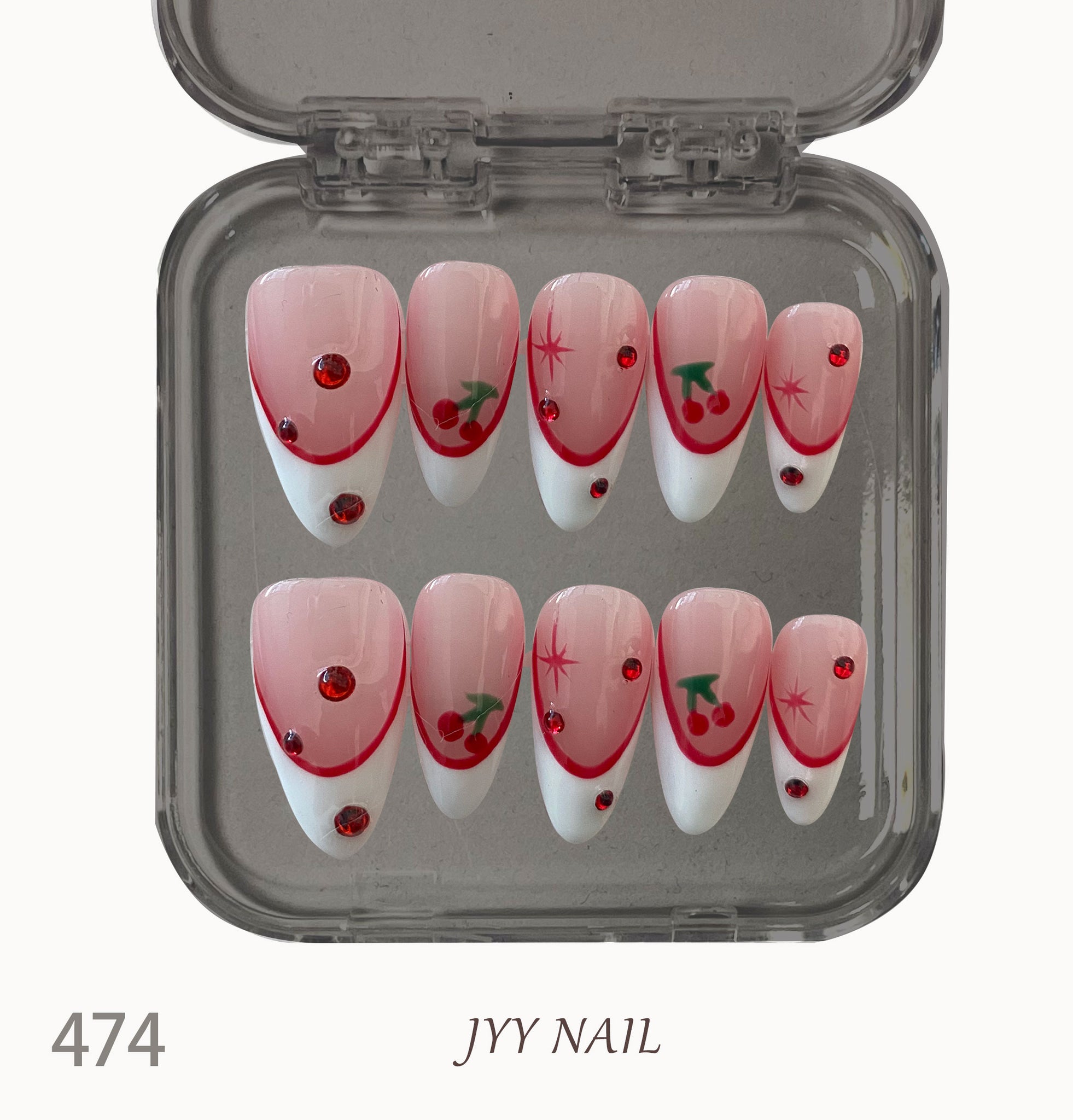 A474 Cherry blanc:High luxury pure hand-painted manicure