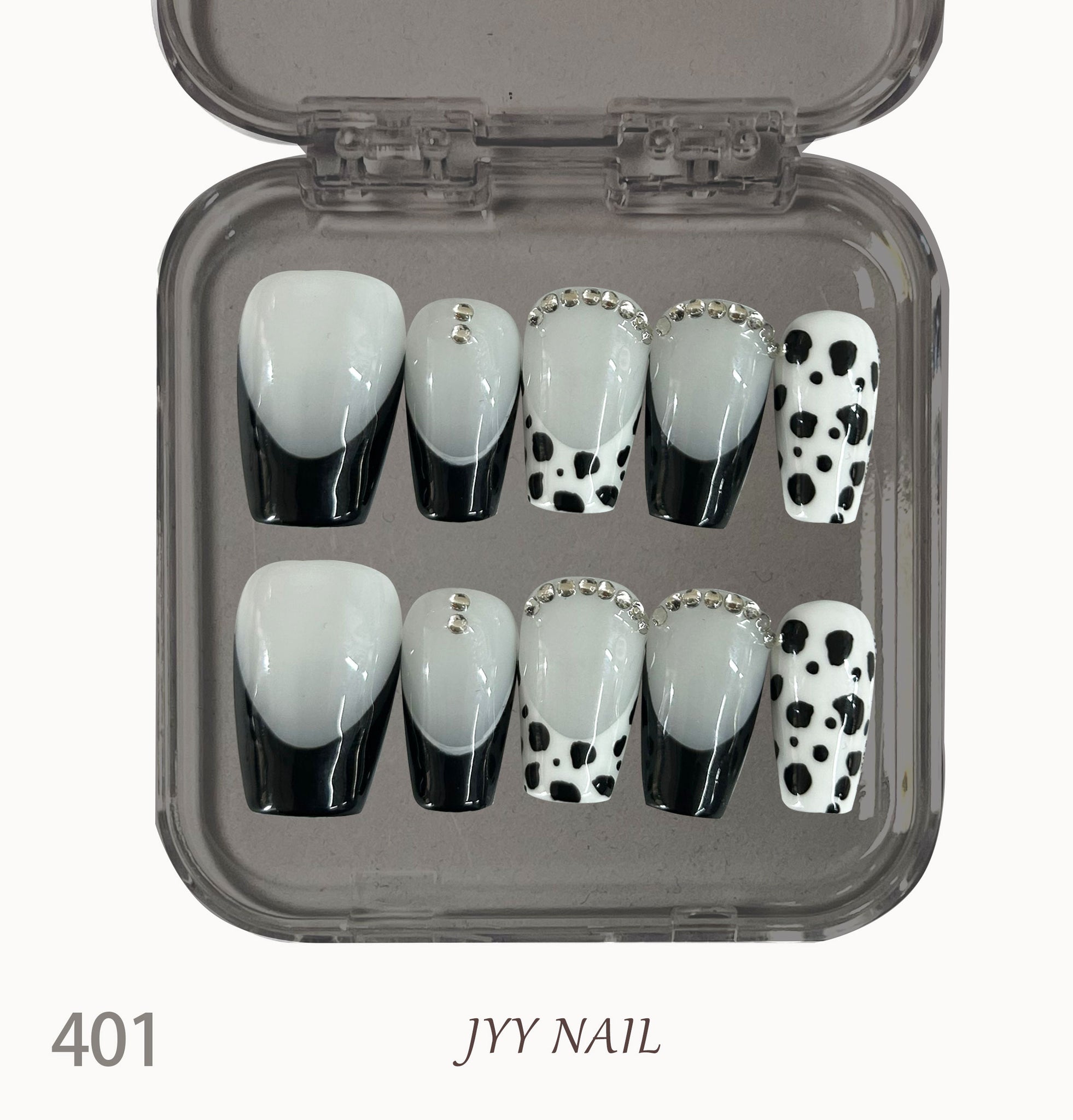 A401 dalmatian:Pure hand-painted original design spot black French manicure