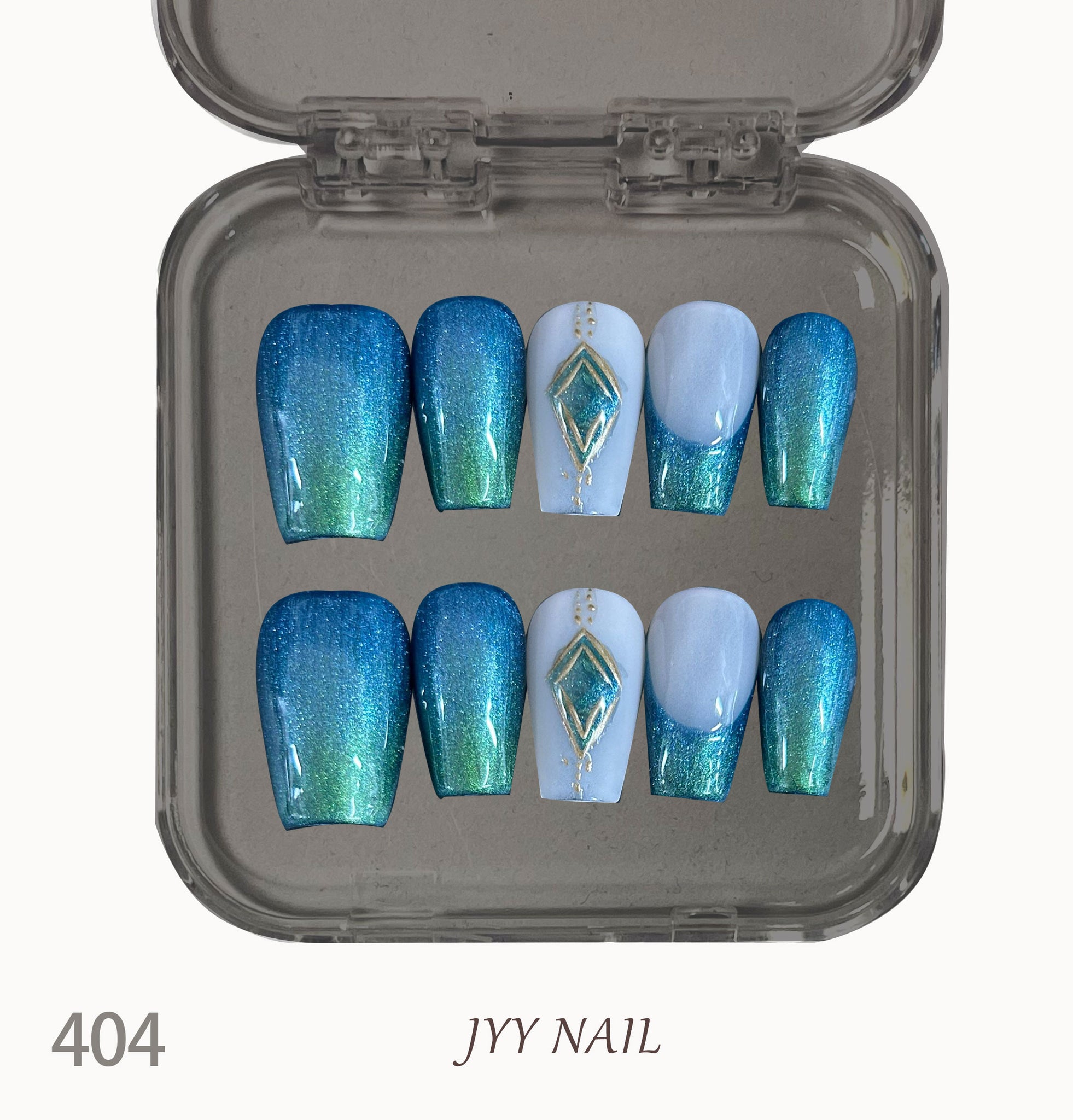 A404 Blue and green peacock gradient:Blue green gradient high luxury custom handmade nail art