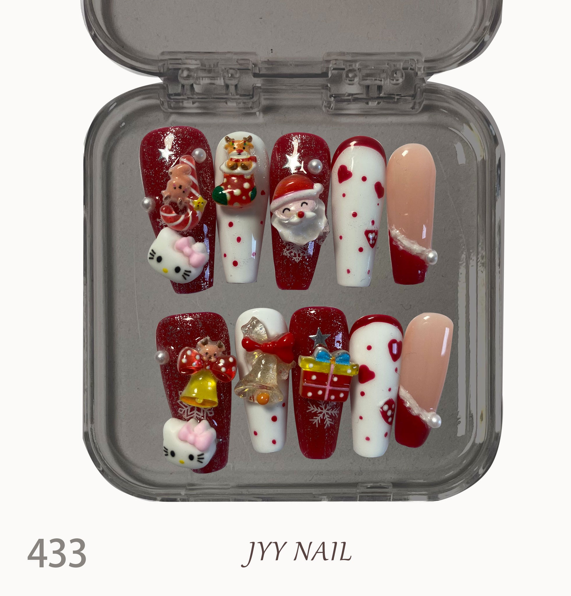 A433 hellokitty Christmas:hellokitty Christmas painting Christmas manicure