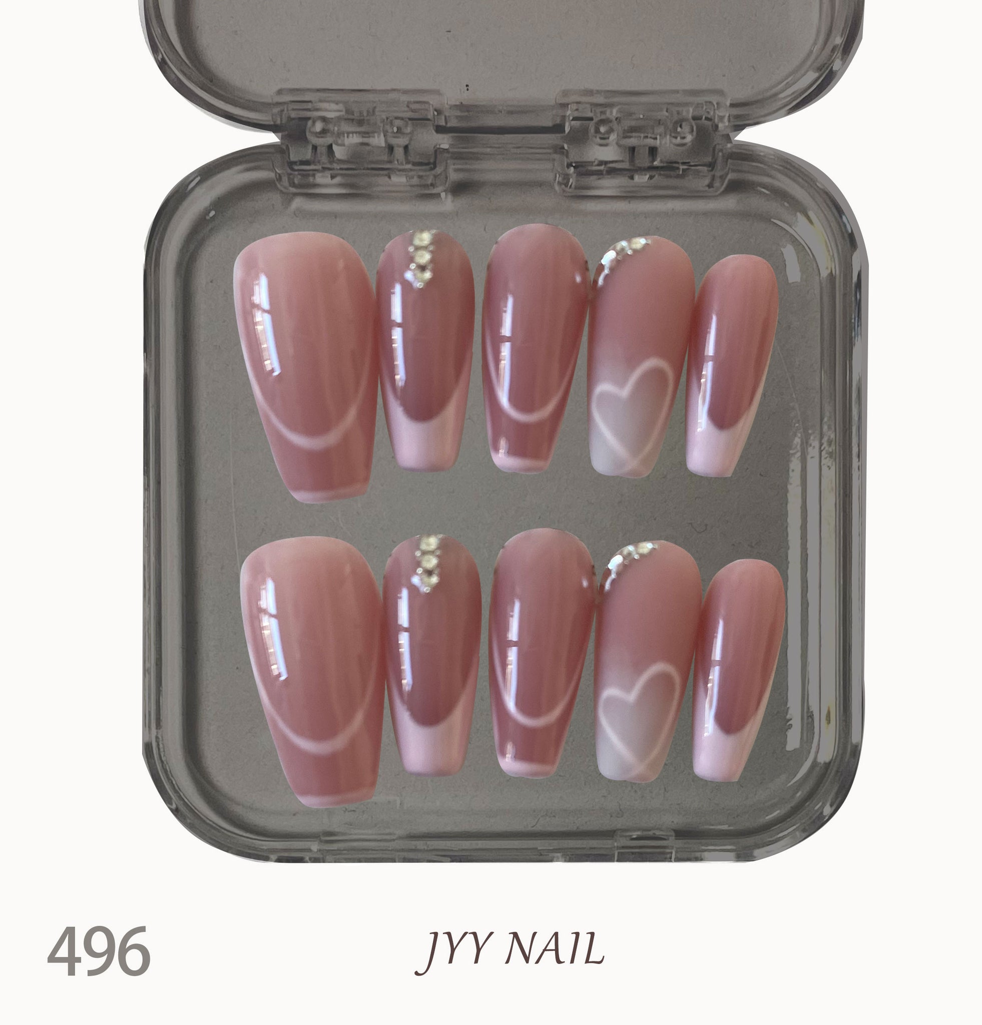 A496 Pink French heart:High luxury custom hand-painted pink love nail art