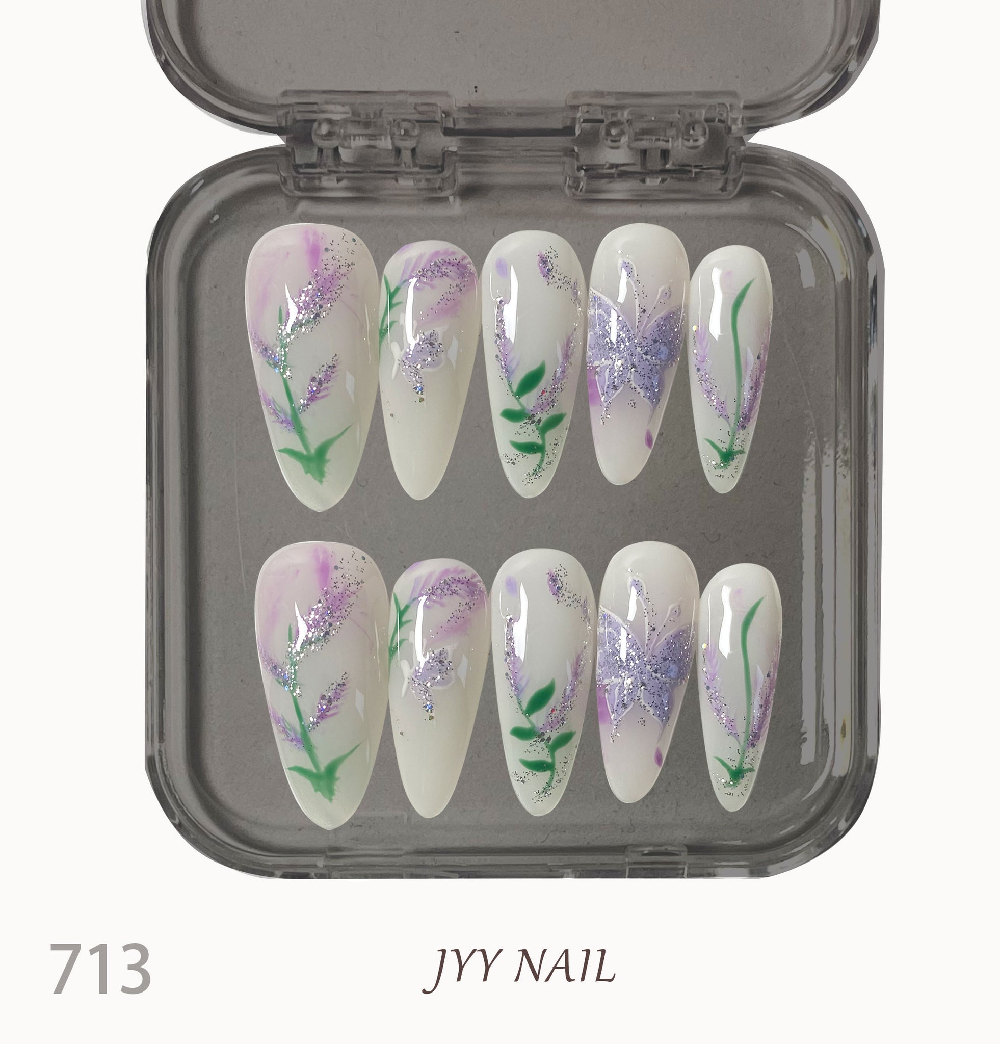 A713Flower butterfly:Hand-painted butterfly nails with flowers