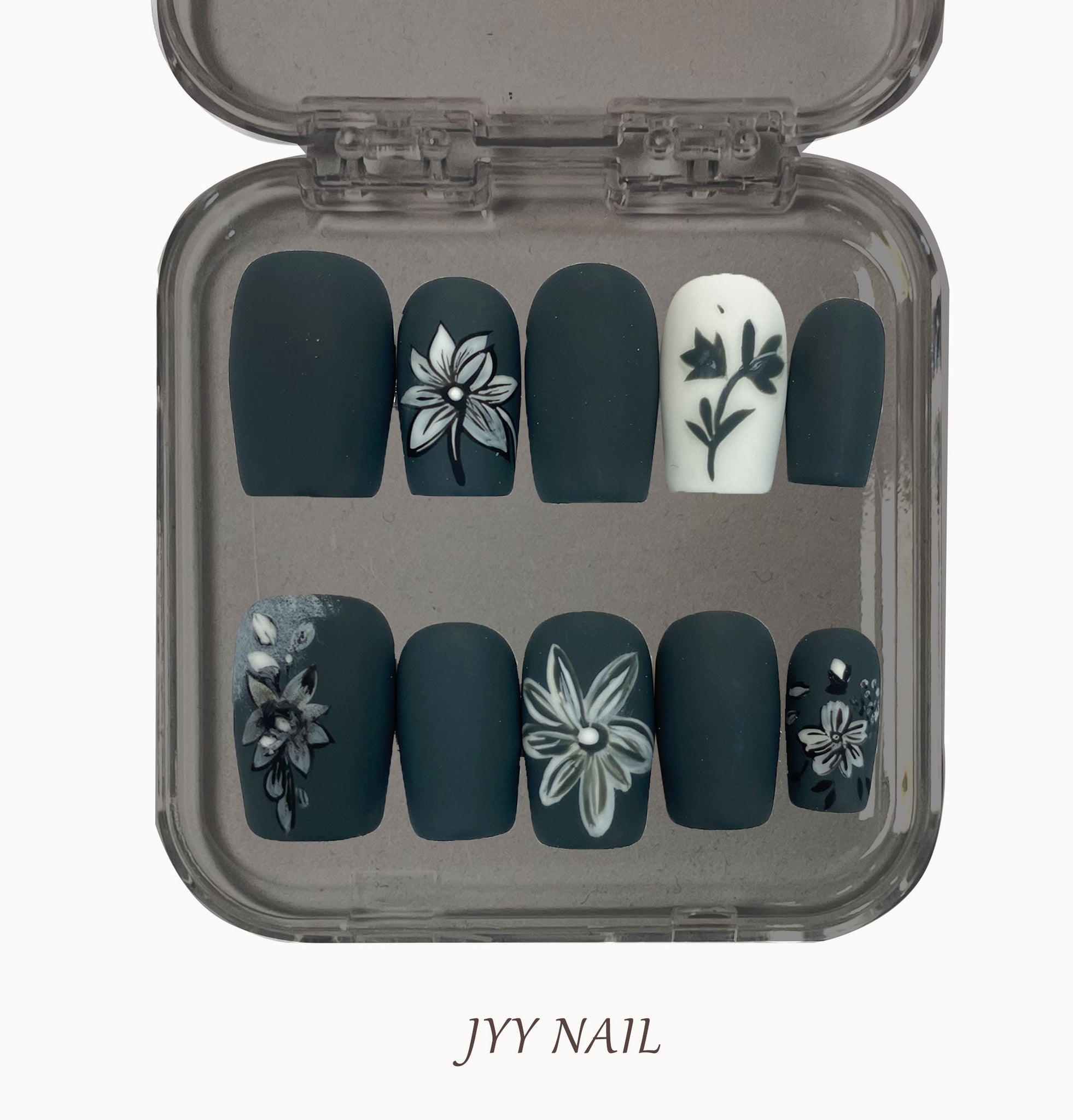 Black camellia nail is a manicure design that combines black and camellia elements, usually with a black base and a white or gold camellia pattern. This manicure design is not only stylish, but also has a mysterious and charming atmosphere for nail lovers who like a challenge and try new things