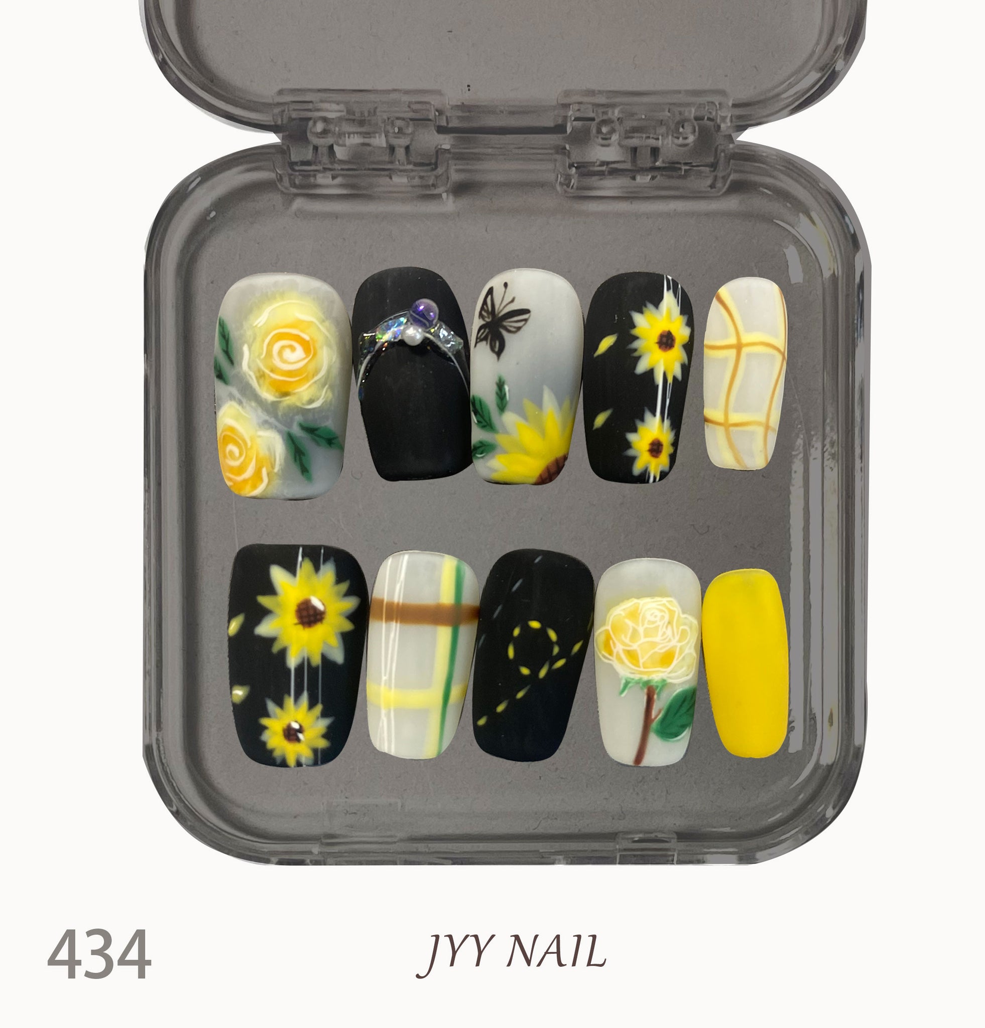 A434 Rose sunflower:Rose sunflower pure hand-painted nail art