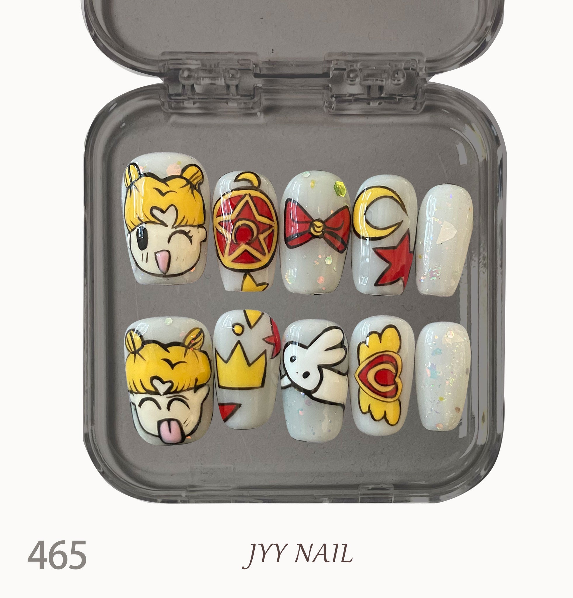 A465 Cartoon Sailor Moon:Pure hand-painted high-end custom manicure