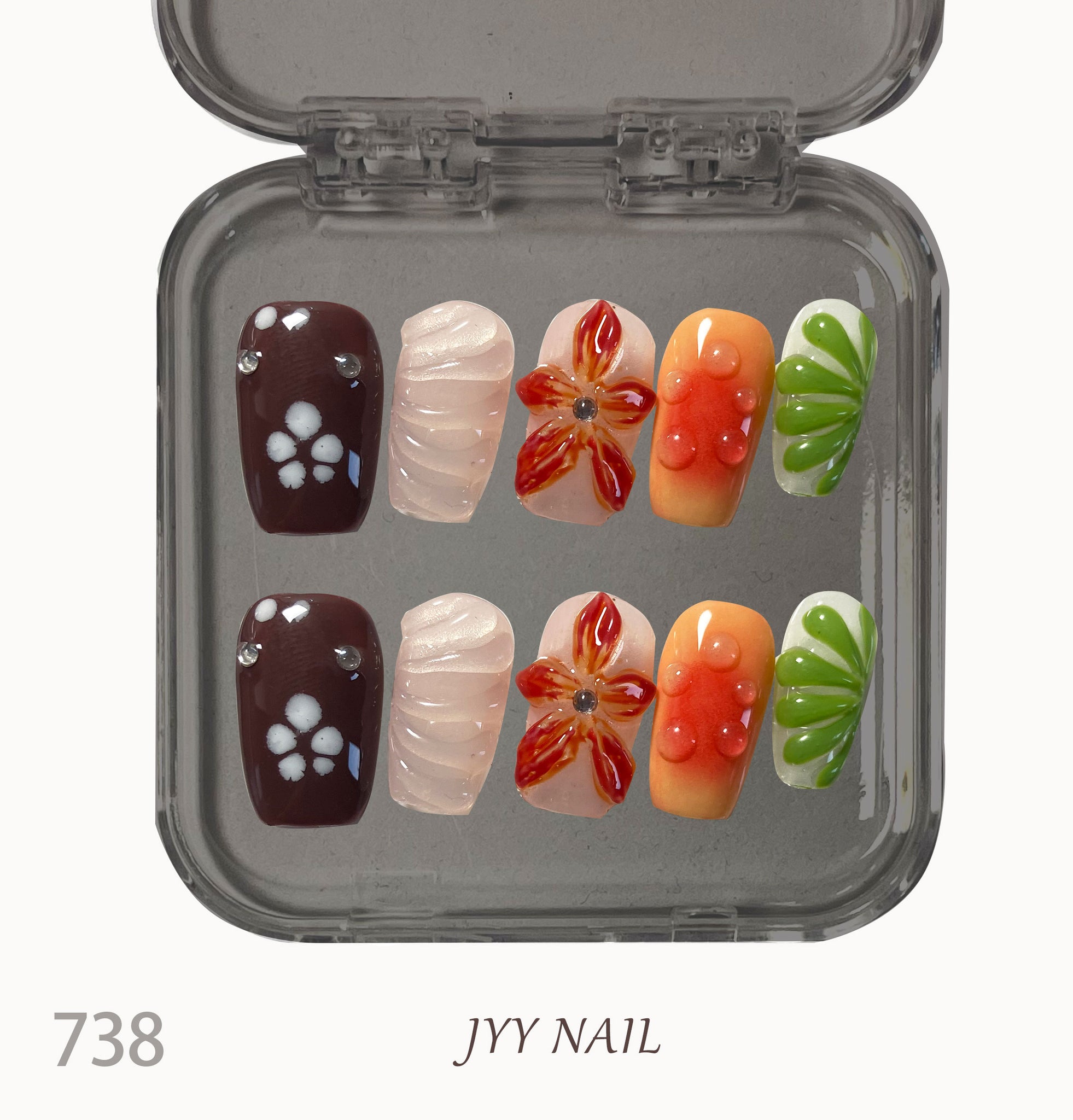 Hand-painted shell flower nails are like collecting the beauty and fantasy of the entire ocean on your fingertips. Each shard of shell shimmered with a unique shine, as if the sun was jumping on the crest of the waves through the shallow sea. They are scattered and inlaid, exuding a charming Marine atmosphere