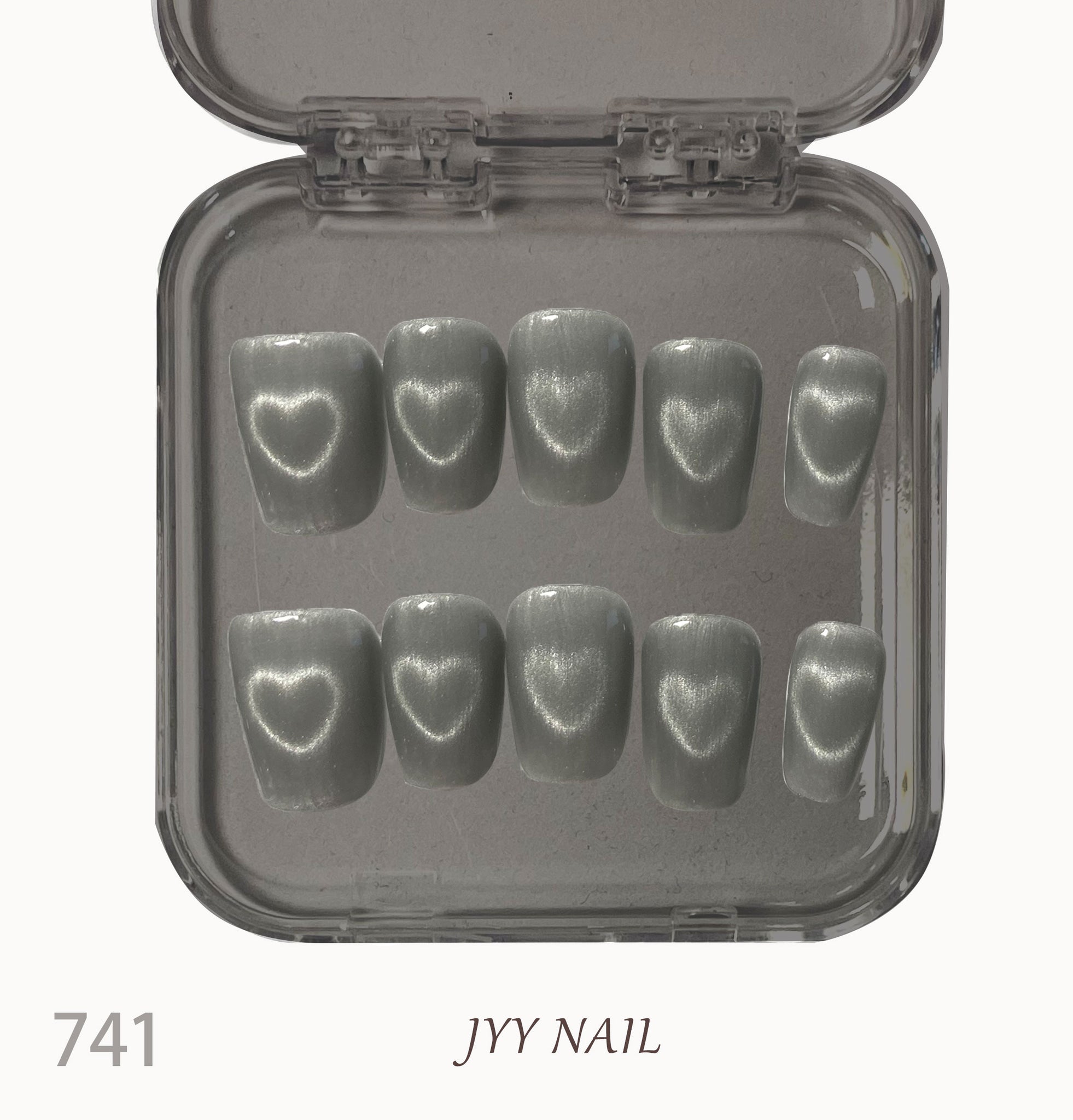 A741Silver love cat eyes:Hand-painted silver love cat eye nails