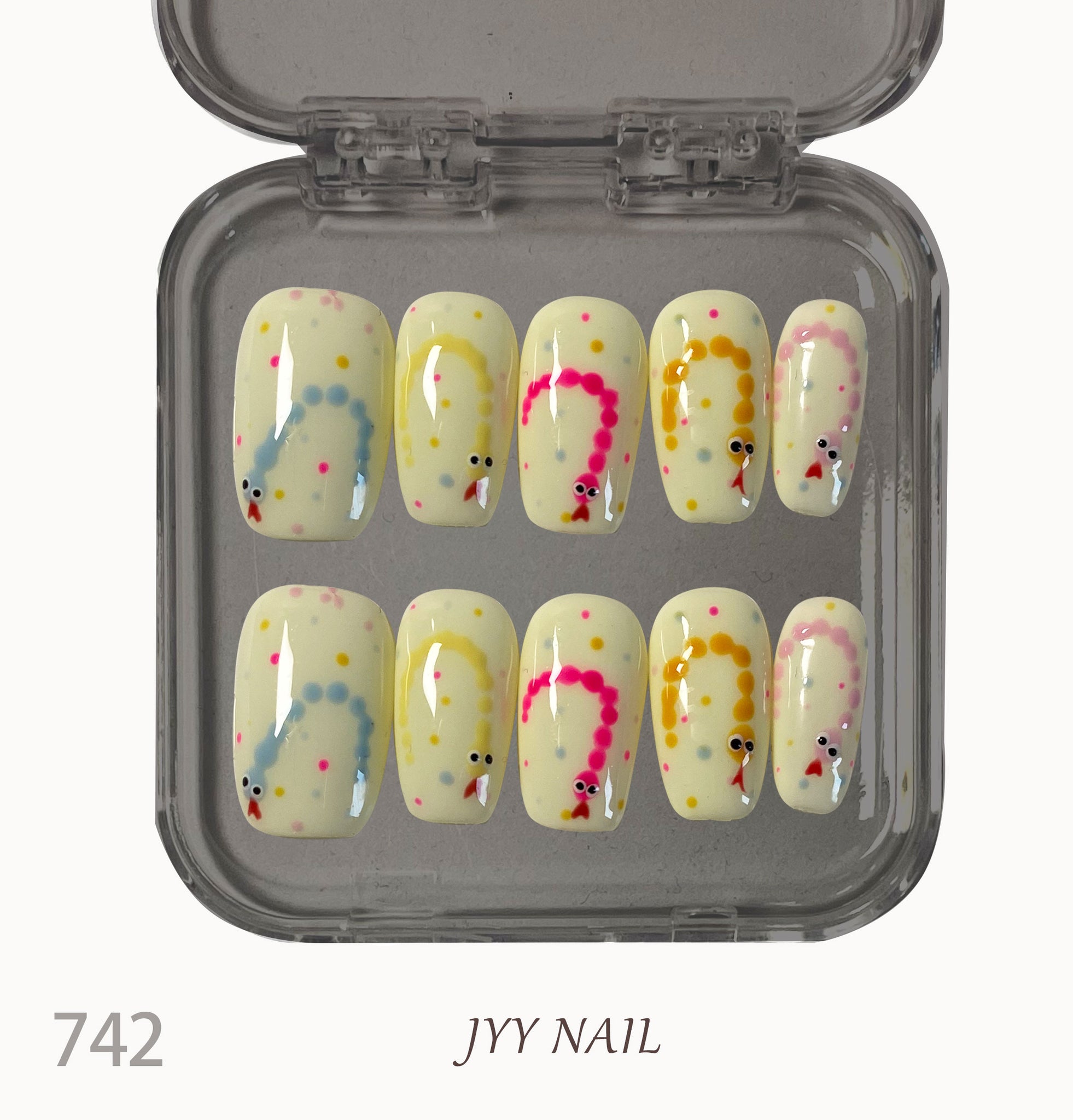 A742Gluttonous snake:Hand-painted yellow bottom snake nails