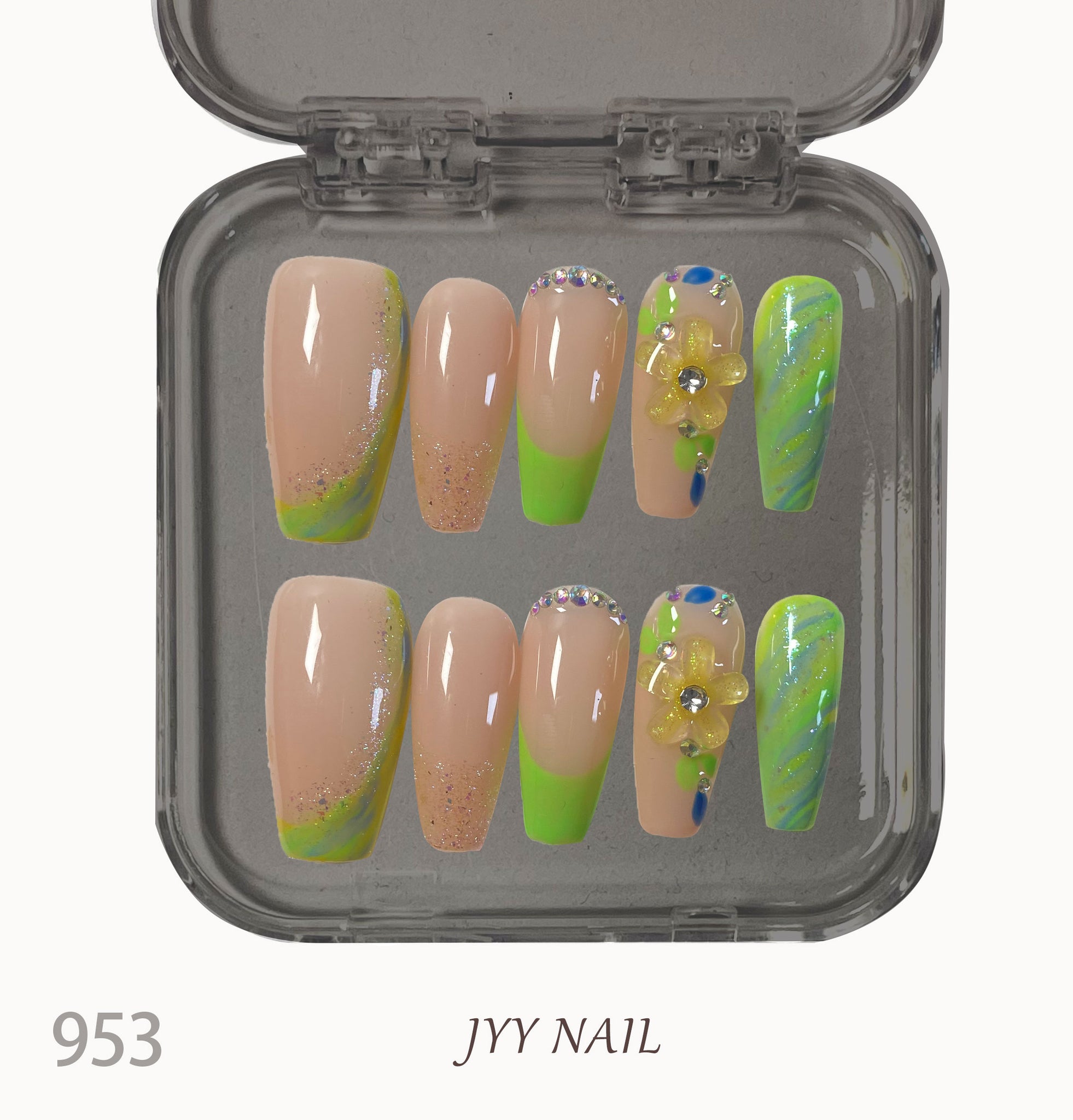 A953 Hand-painted in spring style:Pure handmade high-end custom wear nail
