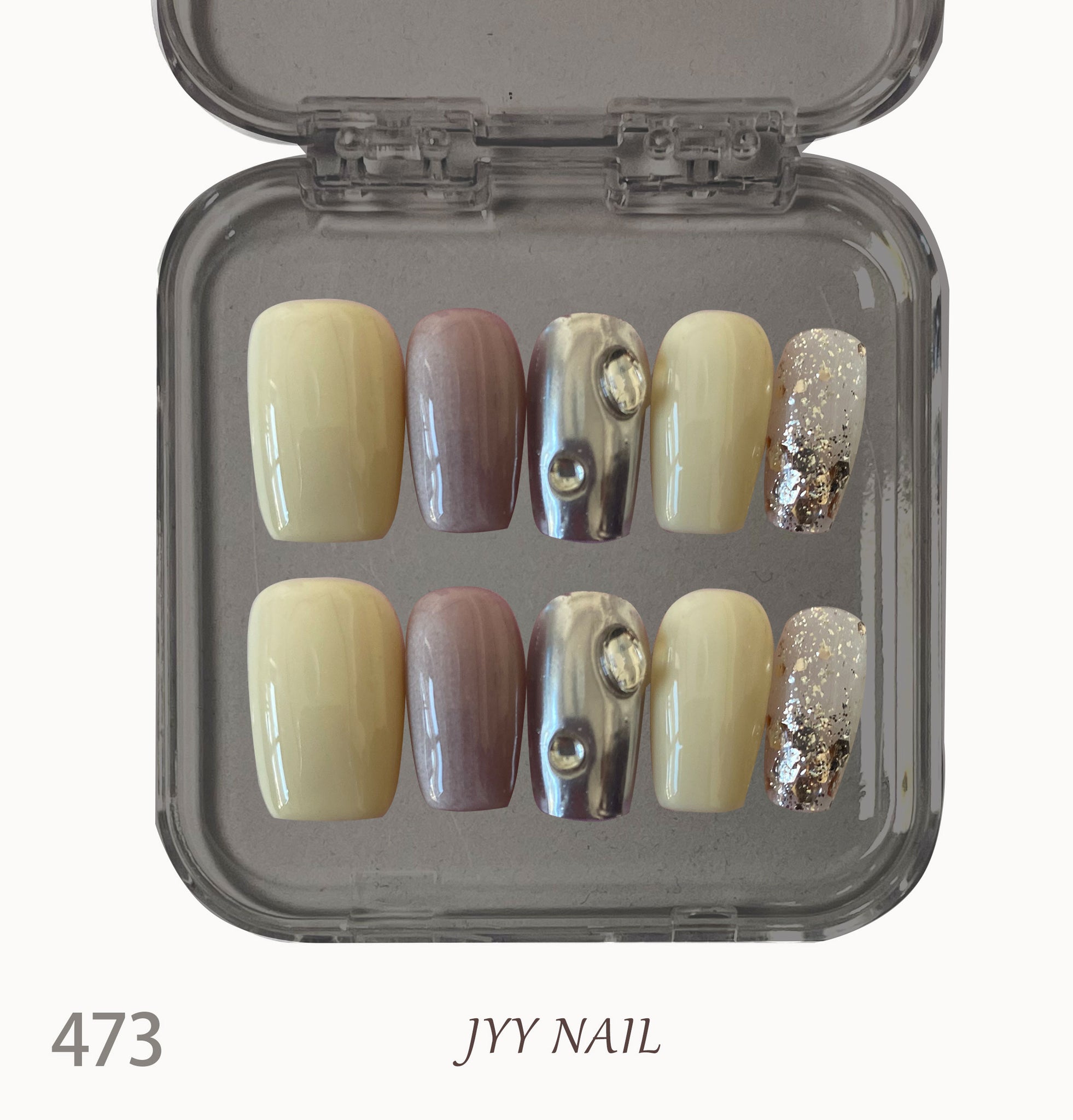 A473 Gradient cream:Pure hand-made advanced white short custom nail