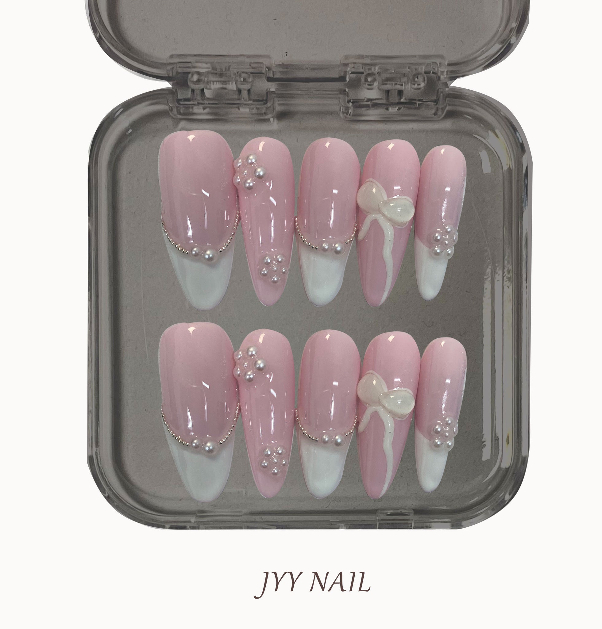 Pink-white-edge is a manicure design that combines pink and white elements for a fresh and romantic look. This manicure design usually has a pink main tone with white edges or embellishments to create a spring atmosphere and feminine softness