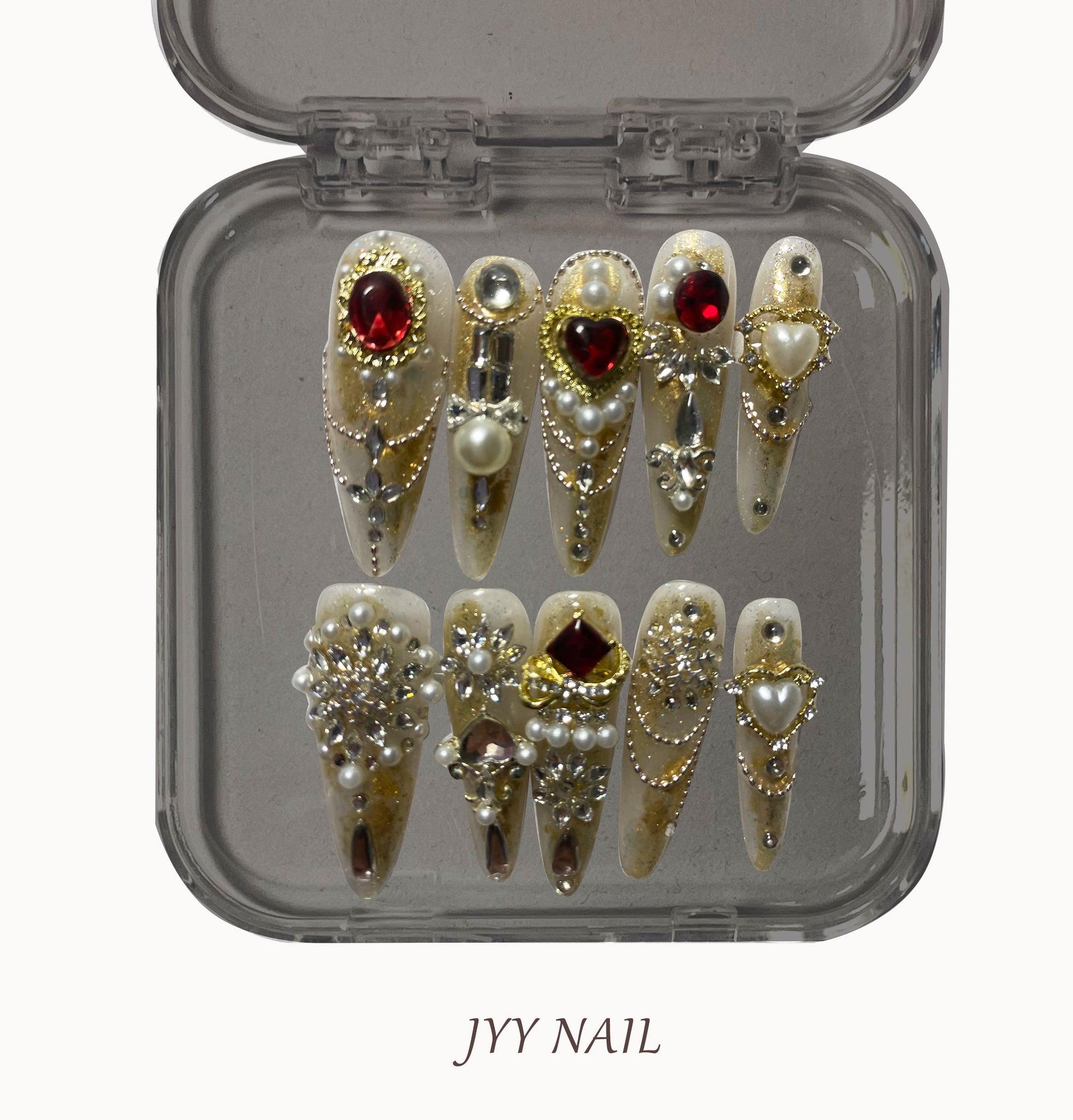 Ruby Diamond Nail is a combination of ruby elements and diamond design nail style, not only to show the luxury and noble ruby, but also through the embellment of diamonds to add the overall sparkle effect. This manicure design is usually set with diamonds on red nails to create a unique visual effect that is suitable for all occasions.