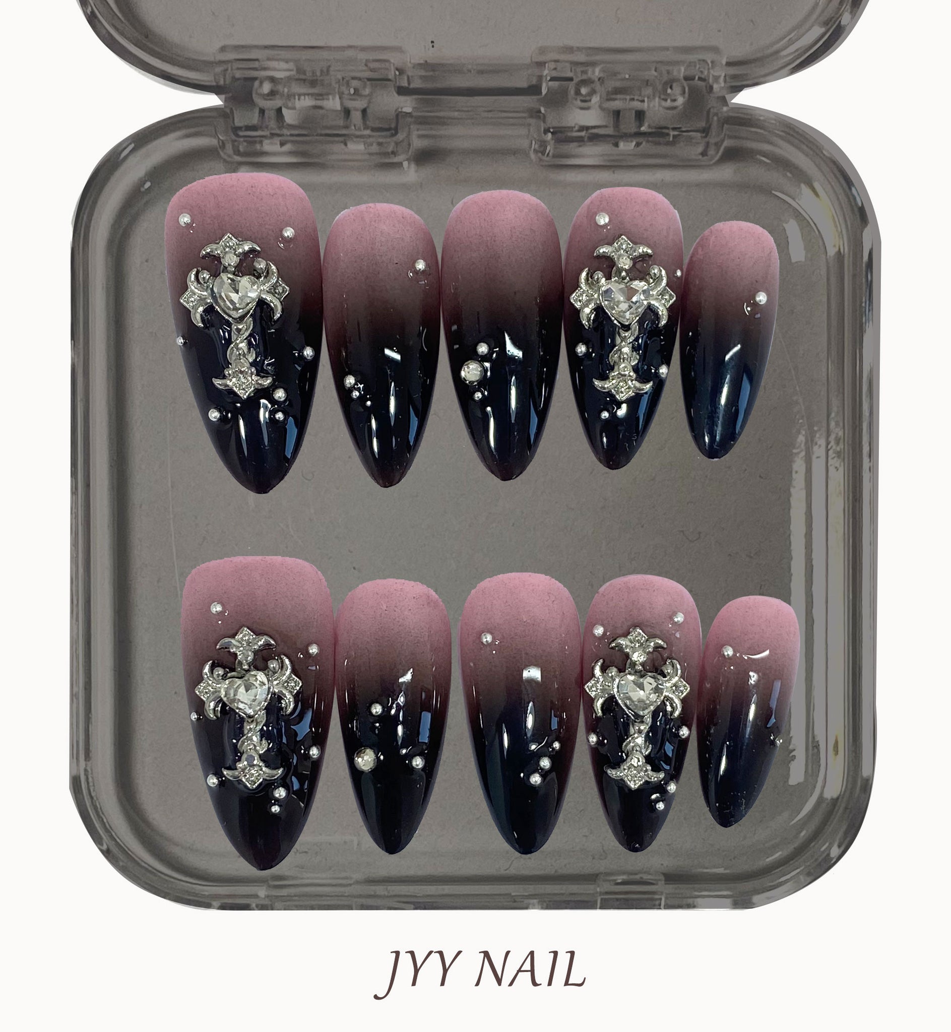The black pink Cross manicure combines the contrast of black and pink for a mysterious and sweet look. The combination of black and pink makes the overall effect both personal and lovely, suitable for various occasions. By adding a white inner cross inside the cross, it adds layer and detail to the manicure, making it more elaborate