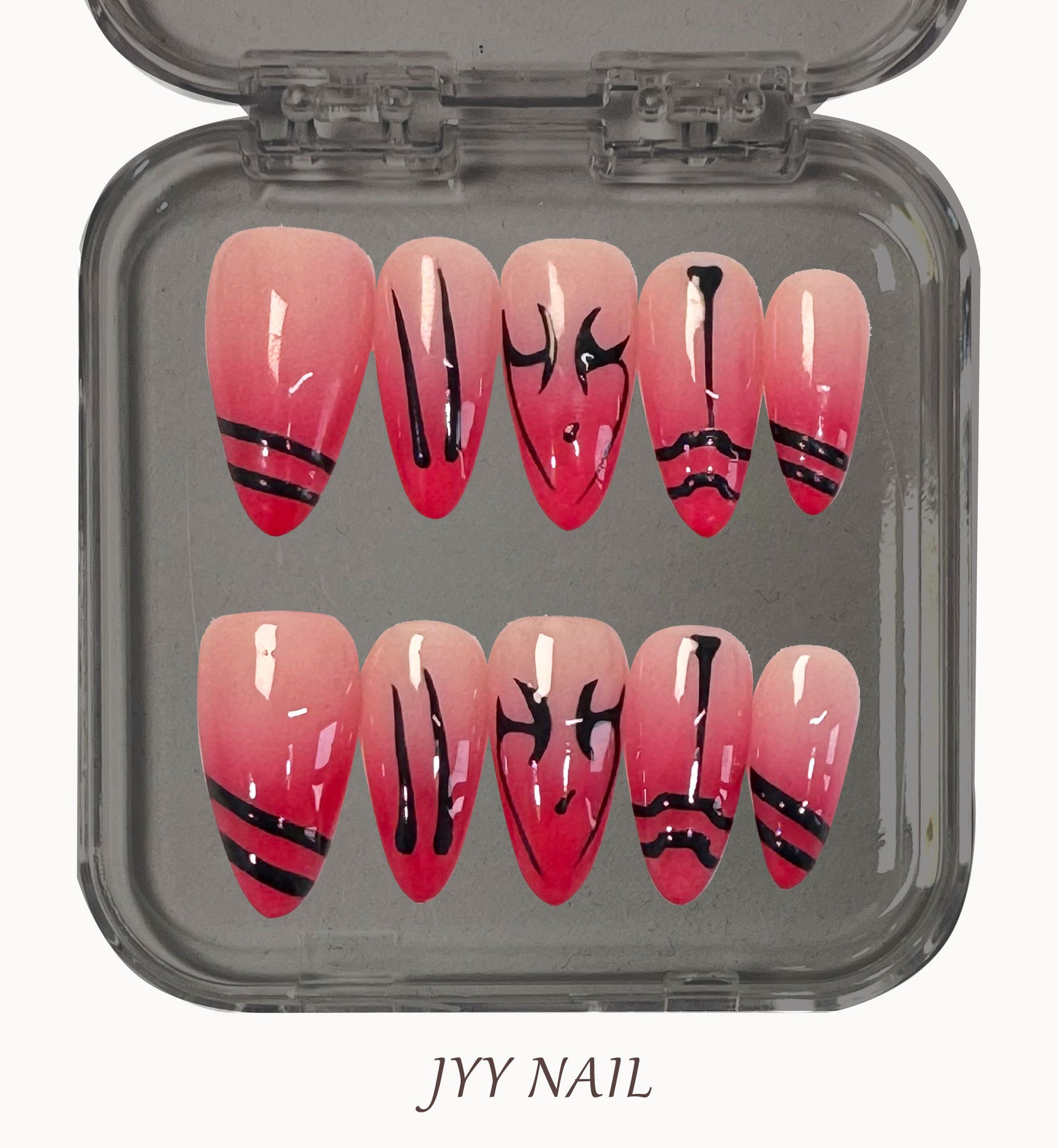 The design concept of red gradient geometry nail art is to show a sense of fashion and personality charm through the combination of color gradient and geometric elements. This design is not only beautiful, but also shows a unique style and personality through different colors and shapes. Whether it is an elegant and intellectual OL or a sweet and cute girl, you can find a red gradient geometric nail style that suits you