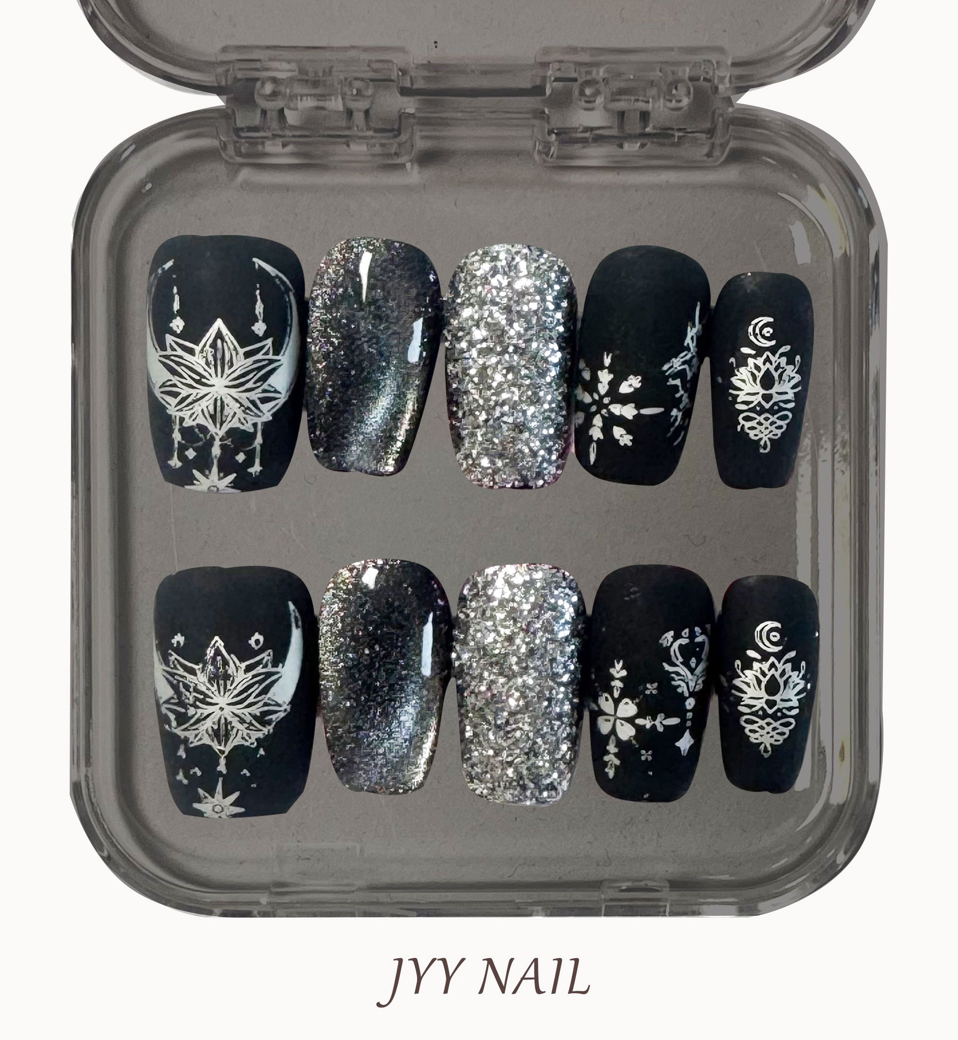 special occasions : the delicate combination of silver and black makes this manicure a standout even for special occasions